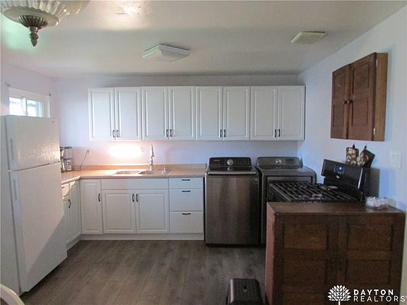 Over 1,200sqft!!! You will love the charm of this 4 bedroom, 1 bath, brick ranch! It features newer flooring and carpets throughout, freshly updated white kitchen cabinets! The kitchen and dining room is open to the living room! The house has been freshly painted throughout!! The yard is enormous and has plenty of space for the kids to play and have a bbq! All kitchen appliances stay! It also has a newer windows, water heater, & siding!