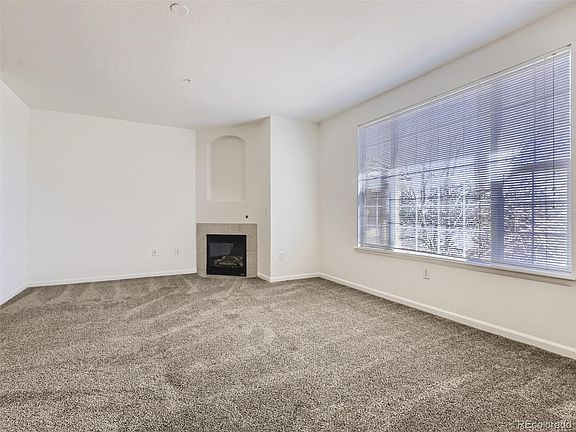 Walk into this bright and sunny second floor condo in the beautiful First Creek neighborhood. This 2 bedroom, 2 bathroom home features brand new carpet and paint through out. The large open floor plan is perfect for entertaining. The living room features a cozy gas fireplace and is open to the dining room and kitchen. The oversized laundry room is located off the kitchen and offers extra storage. The primary bedroom features a private full bathroom and walk in closet. Enjoy the covered patio through the sliding glass doors off the dining room. There is a 1 car deeded garage plus 2 additional parking spaces. This gated community is beautifully maintained and includes a pool, hot tub, parks, playground, basketball courts and plenty of green space. The community is located near grocery stores, shopping, restaurants, and is easy access to I-70, E470, Light Rail and DIA. Its a wonderful location!
