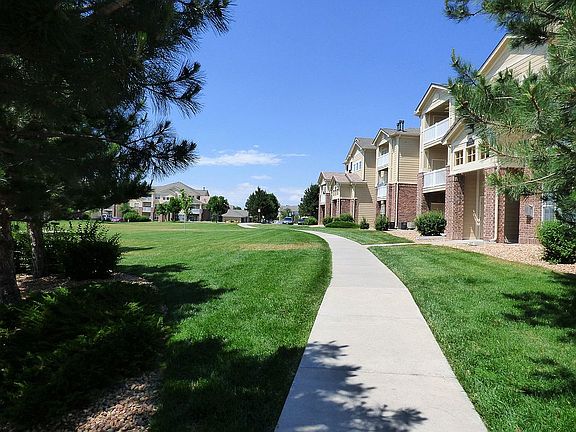 This is a beautiful and well-maintained, top-floor unit in a fantastic neighborhood with incredible views of the eastern plains leading out to DIA! It is an open floor plan with vaulted ceilings, walk-in closet, private covered deck off the bedroom, and separate washer/dryer room. The kitchen has plenty of cabinet and counter space. The bathroom has a double-vanity, large, deep garden tub perfect for soaking, and plenty of extra storage. Outside, the hallways are cemented, covered and heated. First Creek Farm is a gated community that includes a 24-hour fitness center, pool, hot tub, playground, and clubhouse. Convenient access to all GVR schools, Pena Blvd, I-70, and minutes from DIA. Unique opportunity for an incredible condo!