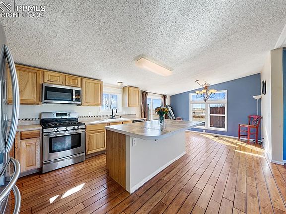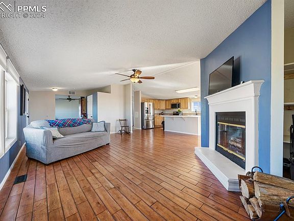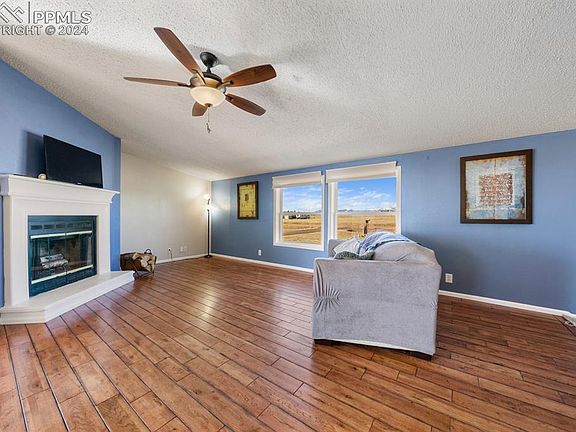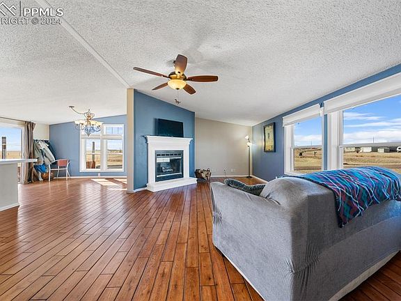 This has been a wonderful home on sitting on almost 3 acres but with wide & deep pastures behind - you can see for miles and all paved roads! Remodeled extensively with 3/4" engineered oak flooring, beautiful interior doors (made wider where possible), hickory cabinetry, gas stove, French style refrigerator (4-5 years old), large tile island (4x7) counter top with opening for a chair on the sink side. All carpet was just replaced - no one has lived on it yet. Wood burning fireplace with storage shelves behind & central a/c. Enormous Master bedroom - big enough for sectional sofa and king sized suite with walk-in closet and private en-suite including a huge soaking tub. Custom Barn door to family room, new interior paint, new upgraded sliding glass door, all operable windows replaced, new roof and some gutters last year. Chicken coop with access to pen inside the shed, cat resting/sunning stairs & access going into same shed for the barn cat, "barn" is a closed-in loafing shed & even has a loft in it (no electric or water) & the horse panels for corral stays, front yard is fenced for dog run, 8' deep paver patio surrounds entire house with 16x25 private south patio and 30x40 private patio on north side features outdoor grill area, marble tops and bar seating area. Great area for a pool! Behind the garage is a garden area for shade loving plants. Garage was insulated and drywalled (window replaced there as well). Most of the driveway is "graveled". Baseball field area in pasture on right side - even a pitcher practice fence. Very quiet location - sometimes there are cows in the enormous pasture behind the house - sunrises are INCREDIBLE - moon rise is STUNNING - neighbors are friendly but not intrusive and helpful when needed! Southfork has all underground utilities - sooo nice - rarely a power outage - and you can watch the fireworks on top of Pikes Peak on New Years Eve!