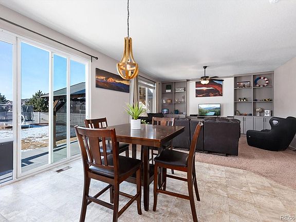 Corner Lot Location! 4 Bedroom, 3 Bathroom, Partially Finished Basement located on a rare 9,693 SF corner lot within the Mountain Shadows neighborhood of Firestone! Curb appeal and an inviting front porch welcomes you into the casual open concept floor plan with an abundance of natural light which provides the backdrop for this home's comfort and livability. Main floor Family Room with ceiling fan and custom built-ins opens into the chef's Kitchen outfitted with all appliances, island, pantry and a large eating area with access to the outdoor living area. 3-Car tandem Garage! The upstairs living area showcases a convenient Laundry Room with washer/dryer included, Full Bathroom with double vanity and linen closet for storage plus 4 generously sized Bedrooms including a Master Bedroom complete with ceiling fan, walk-in closet, stunning mountain views and an en-suite 5-piece Bathroom with updated flooring and soaking tub. The partially finished basement is close to completion with framing and electrical installed offering 765 SF of additional living space. Located on a rare 9,693 SF corner lot, this home offers a private fenced yard, storage shed, extended patio with covered gazebo providing the perfect place for kids activities, entertaining or casual outdoor living. Excellent location with convenient access to Mountain Shadows Park, miles of walking/biking trails plus shopping, restaurants, I25, Longmont, St. Vrain State Park and all the area offers. Your family won't want to miss the opportunity to be a part of this vibrant community!