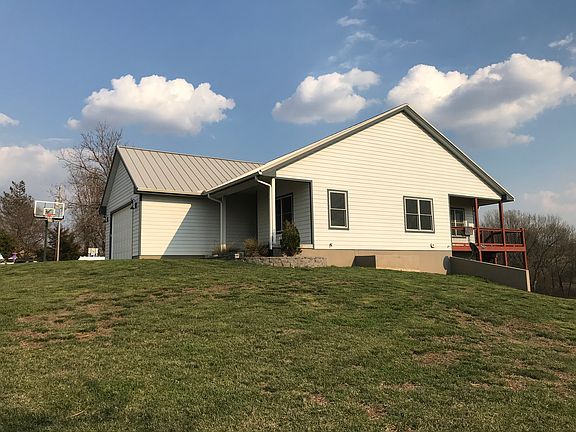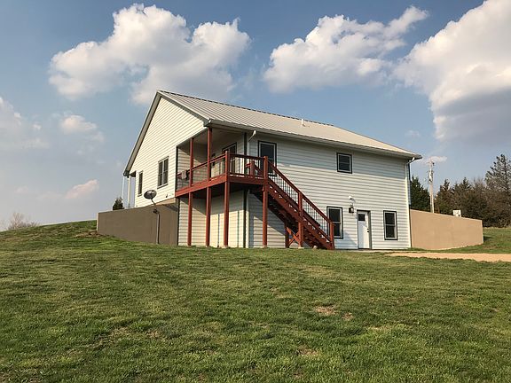 Custom built home that we moved into in 2015. All oak trim, solid core oak doors and oak windows on main floor, all fiberglass exterior entry doors. Solid hickory hardwood floors on main level with 9 foot ceilings throughout. Custom knotty alder cabinets with granite counter tops. Tile flooring in all 3 bathrooms, master bath floor is heated. All bedrooms have walk in closets. Pet room in basement with raised shower for washing dogs. Whole house stereo system with 7 zones from 2 sources. Hemmed hidden fastener metal roof installed by company from Kansas City. Zoned HVAC system so basement will stay as warm as you want it. 2x6 exterior framing with spray foam insulation. 4.6 acres with a beautiful view.