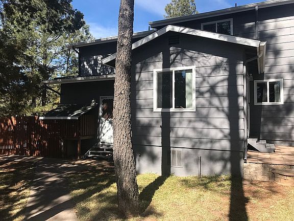 Large home on over half an acre located on a quiet, dead-end road. This Pine property offers peace and serenity on both the covered front deck or in the large back yard -- perfect for relaxing and entertaining. The home has room for everyone, with 4 bedrooms plus an office and hobby/playroom.This is full time or vacation living at its finest. Besides the one-car garage attached to the home, there is a stand-alone 3-car garage that even has enough room for your toys and a workshop.