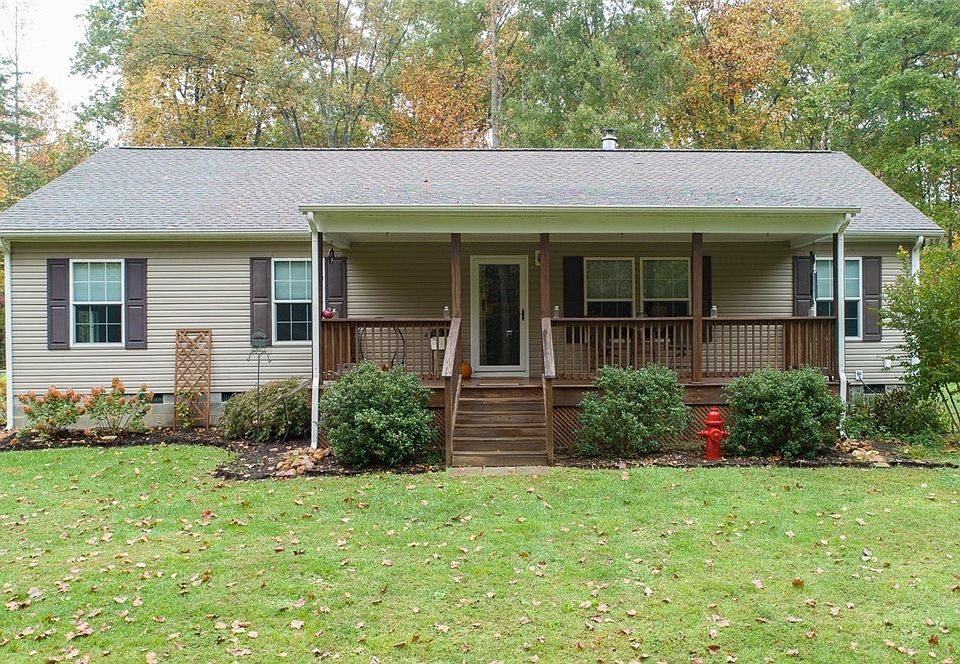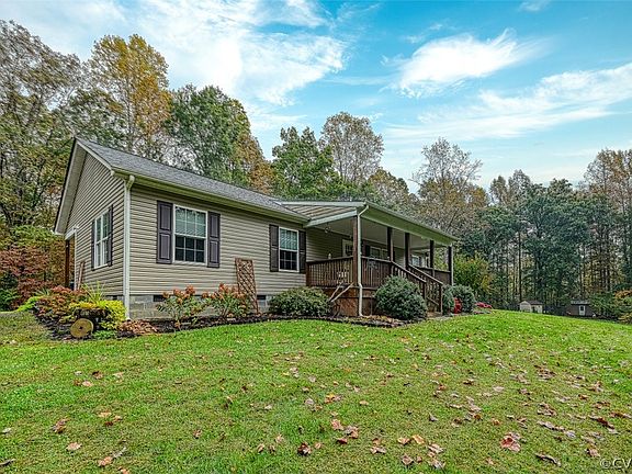 Welcome Home! This charming 2-bedroom, 2 full bath home ( 3 bedroom perk) can easily be converted back to a 3 bedroom home, on over 1,500 sq ft and 5 private acres! Family Room has LVP flooring and wood stove to sit by and enjoy this fall & winter. The updated eat-in kitchen is very spacious and great for entertaining! Primary bedroom features walk in closet and en-suite bathroom with standup shower and double vanities. Relax outside on your front porch or on your back patio. Close to I-64 to commute to Richmond or Charlottesville. Don't miss this opportunity to call this place Home!