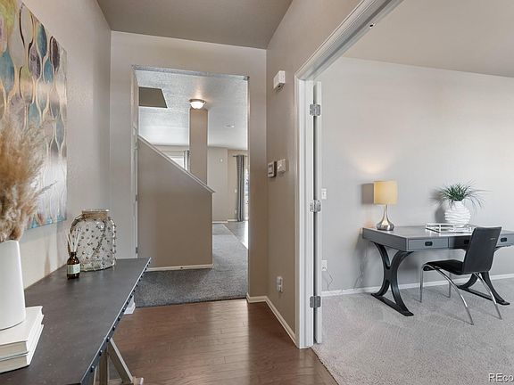 Don't miss out on this beautiful DR Horton Hayden floor plan and former model home, perfectly nestled in coveted Crystal Valley Ranch! This home has it all! The main level features hardwood floors in the entryway, dining room and the kitchen which showcases granite countertops, charcoal cabinets, stainless steel appliances, a gas range, a sizable walk-in pantry and a large island. The dining room and family rooms are open to the kitchen so no one will feel left out! A main level office is perfect for working from home and a large bedroom with a walk-in closet and full bathroom would be ideal for multi-generational living. Upstairs you will find the primary bedroom with a separate sitting area retreat. The primary bath offers double vanities and a newly updated shower. The walk-in closet is a dream! The 1st guest room has a walk-in closet and an ensuite full bathroom. Down the hall you also have a separate loft area, perfect for a kid's play area, media room and more. Two additional bedrooms and a shared full bathroom provide plenty of room for all. Enjoy the upstairs laundry room with no lugging laundry from floor to floor. Take advantage of the Crystal Valley Ranch clubhouse, fitness center, and pool, as well as Rhyolite Regional Park. You’ll love this spectacular location just minutes away from quaint downtown Castle Rock which offers many restaurants, boutiques, coffee shops, breweries, outdoor concerts and more!