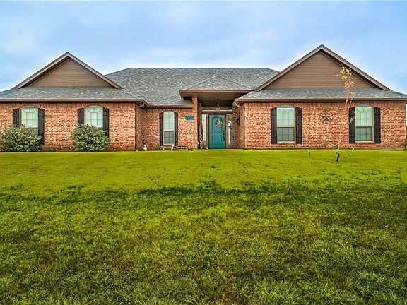Look no further, this is THE ONE!! This beautiful home is complete and only 13 months old! Lots of extras have been added!! Full privacy fence, water softener, large wooden play system with rubber mulch, Life Size Checkerboard, fire pit area, landscaping including fruit trees, oaks, and birch trees. So much space and MOVE IN READY!! Close to I35 and sits on a full acre lot MOL. Very energy efficient home with large bedrooms, a HUGE bonus room and open kitchen/living concept. Private well and aerobic system. Utilities include OG&E and Cox Cable (optional of course)! Home still under builders warranty!! Schedule your showing TODAY!