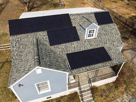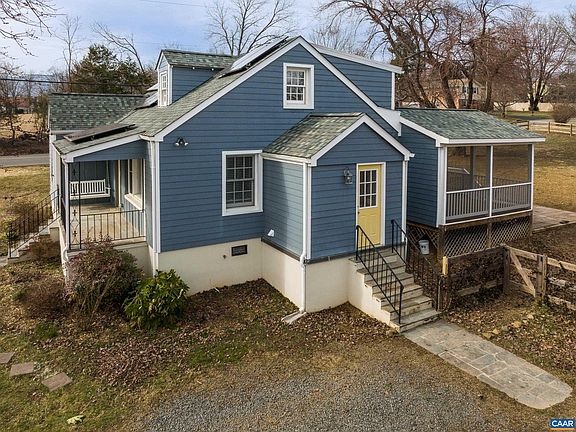 Completely renovated in the heart of downtown Crozet, offering walkability in a quiet, small town setting. Home was fully renovated and updated in 2016-2017. New solar panels make this a Pearl Certified Silver Energy Efficient Home! Freshly painted main level features large light-filled living room, and refinished hardwood floors. Renovated kitchen boasts stainless steel appliances, quartz countertops and a stylish tile backsplash. Main level owner's suite features private bathroom and large walk-in closet. Custom built mudroom/laundry with stacked washer/dryer. Upstairs find 2 additional large bedrooms and a full bath. Enjoy the outdoors on the 16'x16' screened porch and paver patio. Over 1/2 acre lot with fully fenced backyard and 12'x18' storage shed. Home sits on a partial, unfinished basement that was waterproofed in 2018 for additional storage. Only 2 blocks from the Crozet Library, Crozet Park, restaurants & more!