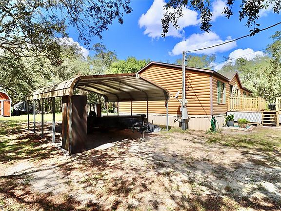 Tucked away on a quiet street sits this cozy half acre lot with an updated 3 bedrooms and 2 bathroom home. Driving up, you will be greeted to a spacious yard with great curb appeal, a 2-car steel carport & a wheelchair ramp— for handicap accessible entry into this adorable home! Upon entering through the keyless entry front door you'll be welcomed inside to the wood burning fireplace— a great focal point for the oversized living room, showcasing new Luxury Vinyl Laminate flooring (2025) throughout with moisture barrier, new lighting & fresh paint throughout (2025). Off the living room is the adjoining dining area, with an open kitchen, designated laundry space, and access to the New back deck (2025)— overlooking the serene fenced backyard, perfect for your pets and watching the grazing horses! Back inside, the open concept floor plan is great for entertaining! The kitchen flows freely into both shared spaces and features wood cabinets, an eat-in area, and is stainless steel appliance ready! Off the main living area is the owner's retreat, featuring a large walk-in closet, and a spacious updated ensuite— with soaking tub, handicap-friendly shower, new vanity, mirrors and extra storage. On the opposite side of the home, for additional privacy, are the two comfortably sized spare bedrooms, both with new carpet (2025) and a shared bathroom, with a new shower, large vanity, and toilet (2024). A few more great perks— HVAC (2020), Newer Hot Water Heater, fenced yard, and two generous sized storage sheds for all your toys and tools! Great location and NO FLOOD ZONE, WHICH SAVES YOU MONEY!