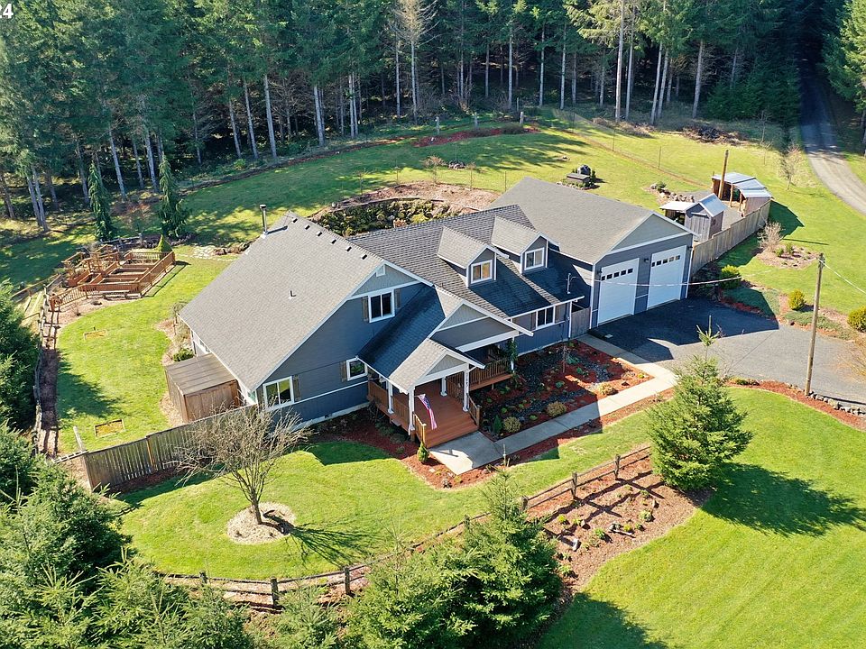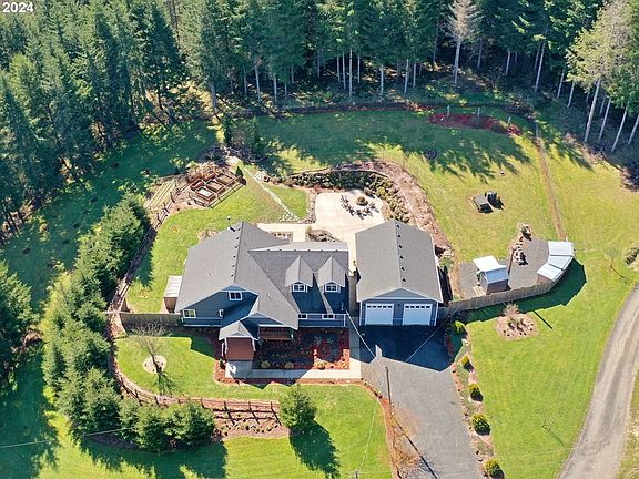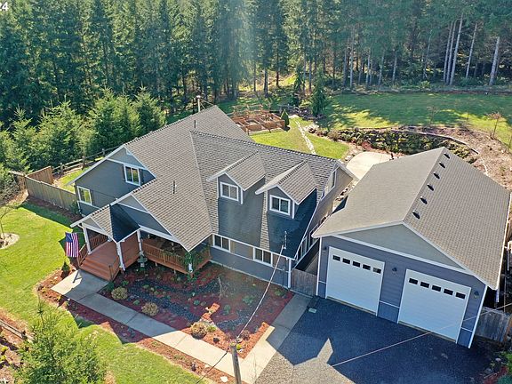 Custom craftsman-style home on 9.25 acres, meticulously maintained inside & out with thoughtful landscaping and acres of timber & trails. Front landscaping includes fir, willow & fruit trees as well as perennial shrubs, bulbs & flowers create an inviting welcome on the way to the covered front porch. Mahogany hardwood floors throughout the entry, open living room with cozy wood stove and dining room. Kitchen with granite counters, mahogany cabinets, breakfast bar & stainless-steel appliances. Large family room with ample storage, wired for surround sound and laundry area as well as door leading out to covered patio and BBQ area. Primary bedroom suite on main floor with walk-in closet as well as soaking tub, tiled shower, double vanity & custom stained glass window. Upstairs are two additional bedrooms, full bathroom and bonus room with built-ins. Back patio french doors lead out to partially covered deck to enjoy the outdoors no matter the weather, listen to the calming sounds of two water features and enjoy the beautiful landscaping, concrete patio with fire pit and extensive rock walls/shale rock pathways. Terraced as well as raised garden beds, fruit trees & blueberry bushes, fully fenced yard, 2nd well for irrigation & greenhouse for the avid gardener. 28x36 shop/garage with 14 ft doors for autos, RV's or other acreage necessities. Wired for generator, when needed. Beyond the yard, explore your private forested trails on over seven acres of mature timber and enjoy the wildlife that abounds. Sit back & relax on your own private & peaceful property. Only about 30 minutes to Sunset Corridor/ High Tech area or take advantage of the satellite internet available to work from home. Short distance to downtown Vernonia & all its amenities, close to Banks/Vernonia Linear Trail. Road & well are shared with neighboring property. Don't miss this opportunity to own the property of your dreams today!