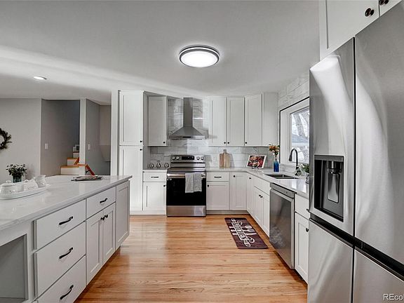 Nestled in the desired University Hills neighborhood, this fully remodeled home offers charm, warmth and beauty. The main floor offers an open floor concept, with a beautiful new kitchen, white tall cabinets, stainless steel appliances and a beautiful oversized quartz island. Formal dining and living room space merges beautifully together with this amazing kitchen. Three bedrooms and a completely remodeled full bath are located in the upper level. As you go to the lower level you will find a secondary full bath, a small room/ office space, and a spacious family room. The laundry room is also located in the lower level, offering plenty of space to add storage and with walk out access to back yard and covered patio. In addition, finished basement offers a versatile oversized bedroom/ flex room with a large egress window offering plenty of natural light into the space. Some other upgrades include: new HVAC system, new paint, new roof, new carpet, new sod and front yard sprinkler system, new stucco, new ceiling fans and the list goes on. Located near major shopping center, a few miles away from Denver University (DU), and also close to parks trails and recreation.