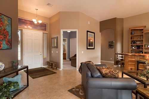Complete info: http://5765esunsetpointdrive.NiceFamilyHome.com - Refined~Stylish~Sophisticated. Fabulous Executive Home in Gated Verde Santa Fe ~ This stunning Sienna Model in La Privada is RICH w/finishes, fixtures, flooring and design. Soaring 12' ceilings, 20''tiles & newly painted inside and out. 3BR(each w/their own private bath). Spacious Great Room w/a fabulous custom built hardwood bar AND Family Room with fireplace. Gourmet Kitchen w/Island, Custom cabinetry,Granite counter tops, Walk in Pantry, Dining area & bar. Large Master Suite w/2 closets. Signature Master Bath features impressive oval tub, and walk in shower. Huge private back yard & lovely front courtyard lined w/pavers complete this package. Professionally landscaped w/a third bay for parking. Verde Santa Fe is a 480 ac. planned community set in the picturesque Verde Valley w/an 18
