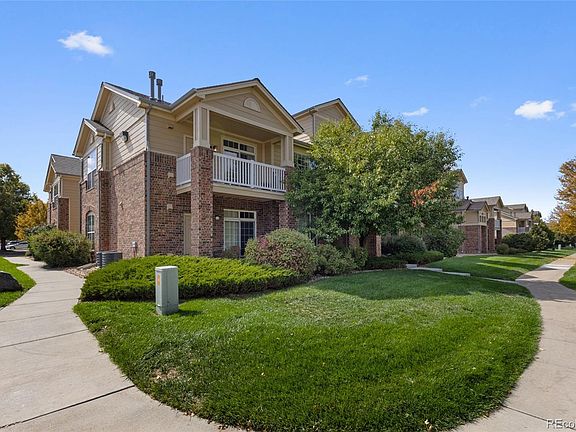 Rare vaulted penthouse end unit in the gated First Creek Farm community! Enjoy the privacy of no one above, soaring ceilings, tall windows, and an open layout filled with natural light. The spacious kitchen includes ample cabinetry and easy access to the dining area and balcony. The vaulted primary suite offers a walk-in closet, ensuite bath, and private balcony with storage. A generous second bedroom features its own walk-in closet and access to a Jack-and-Jill bath. Additional features include in-unit laundry (washer/dryer included), a dedicated carport, and two balconies. Community amenities include a clubhouse, fitness center, pool, and spa. Conveniently located near DIA, parks, shopping, dining, and golf courses.