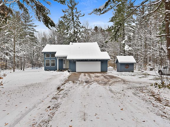 Enjoy privacy and seclusion on 10 acres of mostly wooded land. Conveniently located only a short drive to town while maintaining country living. This 3 bedroom, 2 bathroom home features open concept living, attached two car garage, master suite with walk in closet, central air, pellet stove for supplemental heat, and recently updated bathrooms, furnace and appliances. The full basement, with work bench, and large closets provide ample storage inside, and the shed for outdoor. Enjoy fresh black berries from your own spacious yard and even hunt your own land. Call today for additional information and to arrange your own private tour!