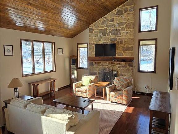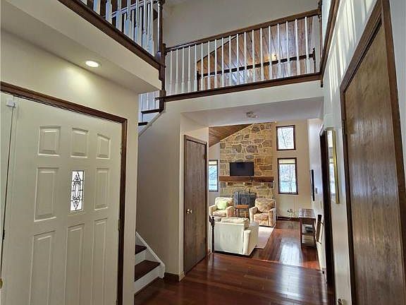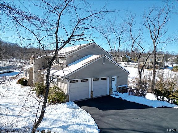 ***Multiple offers received, H&B due by 2/26 at 1pm**** Nicely nestled on Bel Air Dr. in highly desirable Southern Lehigh SD sits this uniquely and beautifully built home with contemporary features. The double doors lead you to an open foyer. Gleaming HW floors throughout. Living room showcases wood vaulted ceiling, stone fireplace, and warm natural light gleaming through the custom windows. Nicely sized formal dining room, updated kitchen with granite countertops, SS appliances, and breakfast nook w/ doors leading to deck. 1st floor laundry room. There is also a recently remodeled full bath w/ marble vanity and tiled standup shower w/ glass doors. Master bedroom, located on 1st fl with vaulted ceilings, glass doors that lead to deck, en-suite master bath w/ jetted tub, standup shower, and walk-in closet. The U-shaped vaulted staircase leads you an open loft area overlooking the picturesque LR, 3 more nicely sized bedrooms, a full bath, and extra storage. Basement is fully finished and features a large family room with built-ins, a rec room with kitchenette, and a full bath. Bonus unfinished area offers great storage space. Rec rm. has walkout doors leading to yard. Large deck overlooks the tranquil backyard oasis. 2 car garage with large driveway offer plentiful parking. Roof was recently replaced.