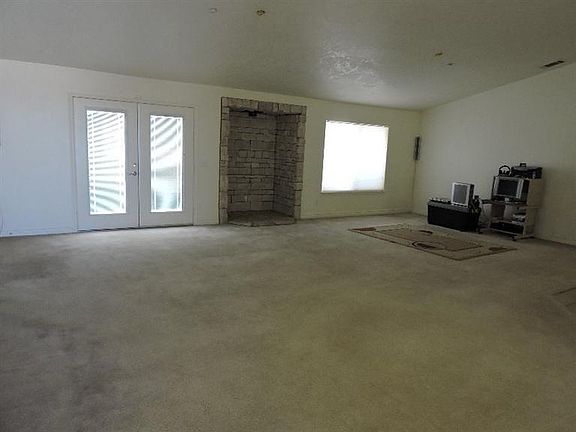 Custom home on corner fenced lot - Split floorplan with 2 masters. Huge master on one side and smaller master on other along with the secondary bedrooms Detached oversized double garage, plus triple attached garage - Open Kitchen w/granite overlooking Great room - Rock hearth for wood or pellet stove (missing) French doors to covered patio - Granite counters in kitchen w/ breakfast bar & walk-in pantry - Den or office. Second garage/workshop measures 40' x 24' with 10 ft roll up doors