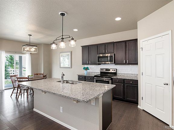 Special year end pricing till 12/31/23. Don't wait till spring and pay more!!! From the moment you arrive the covered porch and back yard covered patio invite you to "take a moment and enjoy". Everything about this home is generous and spacious. Enjoy this five bedroom home, built in 2018 and all the amenities of Crystal Valley Ranch in Castle Rock. Stroll the paths or enjoy the pool, you will be sure to enjoy this location close to shopping and entertainment in Castle Rock. Main floor bedroom and full bath makes generational living and house guests happy. There is also an office or library area on the main floor. The kitchen and large granite topped island make entertaining easy, along with a walk-in pantry and stainless steel appliances. Upstairs the primary bedroom is oversized with plenty of room for a sitting area, TV nook or work-out area. You may need more clothes to fill the expansive walk in closet. The upstairs loft and laundry room allow for a second family room or study perfect for remote working. The secondary bathroom has two sinks and linen storage. You will not want to miss this home. Fully paid for solar keeps utilities very low. Quality abounds in this well-designed home.