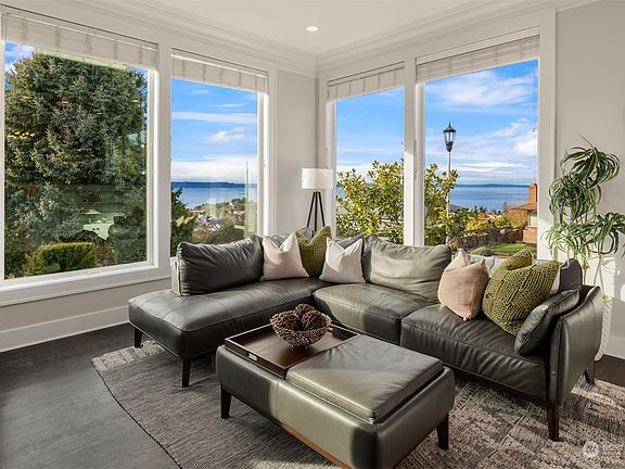 Perched above Alki Beach & Beach Drive lies this luxurious Tuscan home featuring panoramic views across Puget Sound to the islands and all the way to Magnolia, Queen Anne and Mt Baker. From the moment you step inside this home showcases fine architectural elements & design while evoking warmth & comfort. Formal and informal spaces flow effortlessly throughout. Chef's kitchen w/ SS high end appliances, wine fridges, pellet ice maker, quartzite countertops. Primary suite with sweeping views, stunningly remodeled bath w/ stand alone tub, walk-in shower & custom walk-in closet. Enjoy the large rec/bonus room w/wet bar and terrace while watching the sunsets over the Sound. A car enthusiasts’ garage w/ space for 3 cars + wk space & storage room.