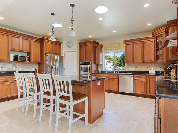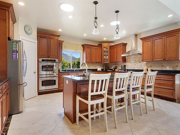 This magnificent Highland home is BEAUTIFUL! The home has a stunning large kitchen , family room, a formal living room, office & built-in lockers. The master suite is large with big windows. There are a total of five bedrooms, study area, exercise room, theater/game room, & kitchenette. Zoned, efficient heating & air-conditioning. LED lighting in and out. The property consists of a fenced yard, large shed, basketball hoop, children's playground, a lawn ideal for soccer games & volleyball, a garden with raspberries, and beautiful mature landscaping with mature trees & fruit trees, pressurized irrigation, covered patio walk out area. Excellent location with nearby top-rated schools. A remarkable blend of luxury and livability make this one of the most incredible properties in the area. Renter is responsible for all utilities.