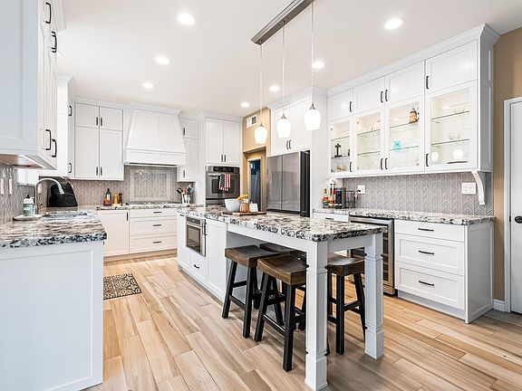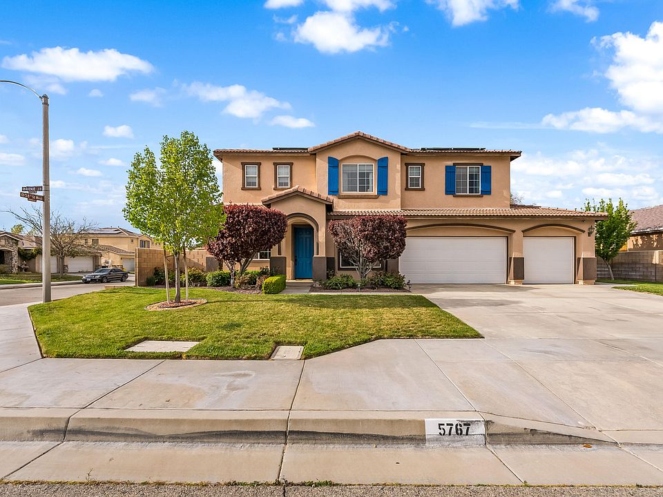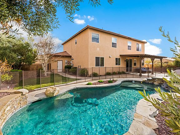 True Pride of Ownership w/ UPGRADES GALORE! This spacious home offers 5 bedrooms, 4 full baths and 3,090 sq ft of living space. $50,000 KITCHEN REMODEL includes NEW white Shaker cabinetry w/ frameless construction, soft close hinges & slides, under cabinet lighting, pull-outs & organizers! GORGEOUS granite countertops w/ modern tile backsplash, new appliances (refrigerator included) and a 10ft center island! The family room has a gas fireplace accented w/ decorative stone and mantle. One bedroom and full bath DOWNSTAIRS. MASSIVE primary bedroom retreat with a sitting area, fireplace, walk-in closet, re-tiled shower and jacuzzi tub. Other features include wood-look tile flooring with 4 inch baseboards, newer Lennox A/C condensers, Cat6 wiring, BONUS ROOM, indoor laundry room w/sink and a 3 car garage w/ built-in storage racks! BUT WAIT... there's MORE! The backyard has a sparkling POOL and SPA, built-in BBQ w/ sink and bar, covered patio, stamped concrete and mature olive trees!
