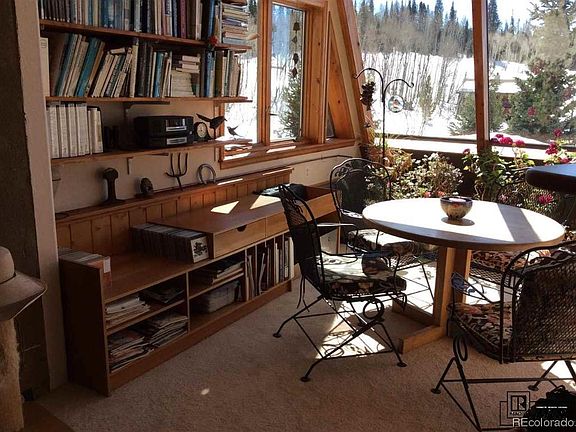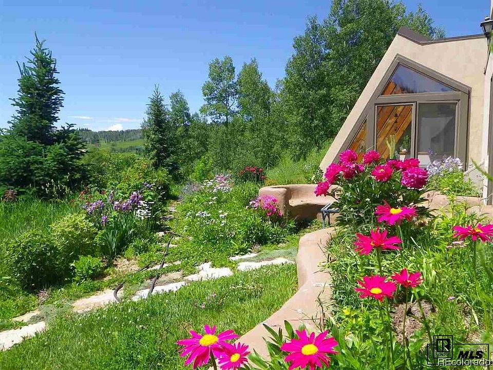 Passive solar home nestled into the hillside in Willow Creek Pass subdivision in North Routt. 1,852 square feet; two bedrooms, one bath, attached one-car garage on 1.05 acres. It’s a relaxing 22 mile drive from Steamboat Springs on a well maintained County Road. The huge solar windows and open floor plan of this home create a bright, airy interior. Curving walls finished with adobe add to the free-flowing character of the space. Large built-in planters boast colorful flowers year-round while at the same time freshening and humidifying the air. The new Karastan Smartstrand carpet has permanent built-in stain protection. Best of all, enjoy unobstructed sky views – drifting clouds and blue sky during the day, incredible stars and moon at night. Built into the earth, the temperature of the house never drops below 55 degrees, even when it’s minus 20 degrees outside. That, plus a 40 gallon solar hot water tank on the roof working in conjunction with an on-demand water heater, minimi. Basement: NONE