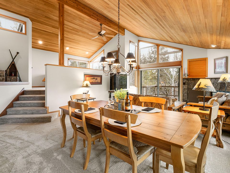 Welcome to this charming Sunriver home, ideally situated in the heart of Sunriver! This residence features an open-concept floor plan that enhances the natural light and spacious feel throughout. The light and bright great room includes a gas fireplace and stunning vaulted wood ceilings, providing an inviting atmosphere. A versatile loft area offers additional space for a home office or playroom. The spacious mid-level primary suite provides a tranquil retreat, while the lower level includes two additional bedrooms, a full bathroom, and a convenient laundry room. Step outside to relax on the expansive Trex deck, complete with a hot tub, ideal for entertaining or enjoying peaceful evenings. New carpet, new interior paint, two-car garage, A/C and much more. Take advantage of nearby Sunriver amenities, trails, and parks. Create lasting memories in this lovely Sunriver home.