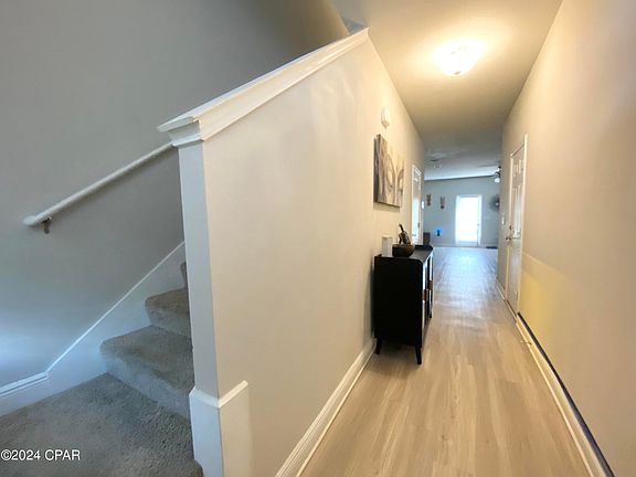 Charming 2-story townhome in Sentinel Point, featuring 2 bedrooms, 2.5 bathrooms, and a serene pond view. This home offers a single car garage, durable vinyl flooring in common areas, and cozy carpeting in the upstairs hallway, stairs, and bedrooms. The open-concept kitchen flows into the living and dining areas, complete with a breakfast bar for casual dining. Sentinel Point boasts fantastic amenities, including a community pool, sidewalks, and ample guest parking. Conveniently located just minutes from Tyndall Air Force Base, shopping, and a variety of dining options No smoking and no pets. Renter to pay power and water/trash. HOA covers grass cutting and community pool. Property available December 15, 2024.