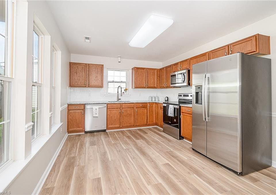 Modern updates, move-in ready, and full of charm! This 3-bed, 2.5-bath home features a main-level primary suite with a spacious walk-in closet, brand new waterproof LVP flooring throughout, new stair carpet, and fresh paint. The kitchen shines with new granite countertops, a modern sink, new backsplash, and newer appliances—including the refrigerator and new dishwasher—that stay! Head out to the covered patio—perfect for relaxing or entertaining—and enjoy a backyard full of potential, whether you're dreaming of a garden, play space, or outdoor oasis. Roof replaced in 2023 for added peace of mind and back porch covered for extra space to relax. Located in the Rivergate community, offering a clubhouse, community pool, and playground. Located in USDA area. Don’t wait—book your showing today!