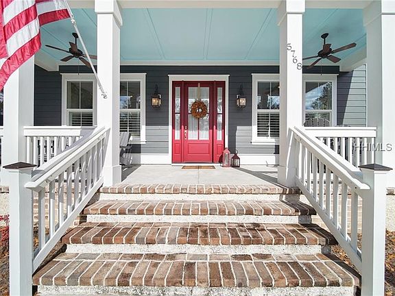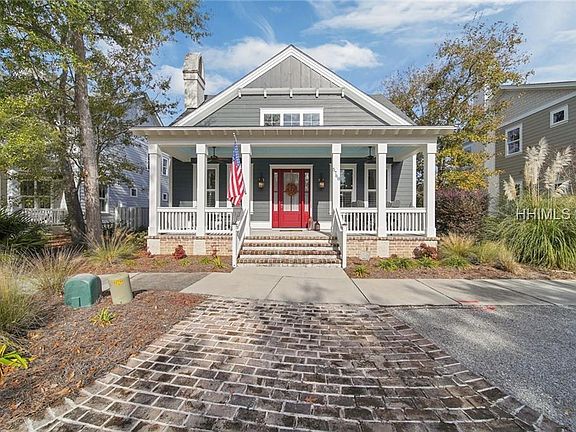 STOCK FARM BEAUTY FULL OF UPGRADES AND WALKING DISTANCE TO OLD TOWN BLUFFTON! Through the front door you are instantly in awe of soaring ceilings, gorgeous kitchen, and inviting living area. Gourmet kitchen w/gas cooktop, farmhouse sink, huge pantry, under cabinet lighting and beverage center. Living area includes a beautiful brick fireplace, lots of windows w/plantation shutters and cottage trim. This home is meant to enjoy life indoors and out. Cozy front porch that is made for experiencing this charming, sidewalk Southern neighborhood. Backyard screened in porch and brick patio w/fire-pit. Off Street parking is great to host guests!