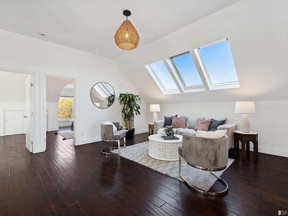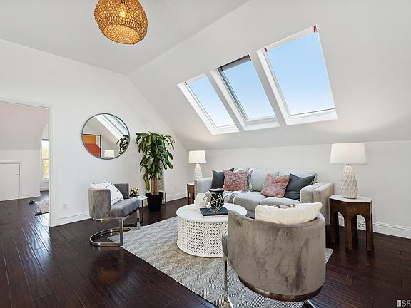 Boasting incredible San Francisco, The Bay and Oakland Hills views, a light and bright layout, and a large front and back yard is this tastefully designed Oakland penthouse condominium. Stepping inside the home you'll discover stunning timber floors underfoot, crisp white walls and an abundance of natural light throughout. The high ceilings and numerous windows, this classic 1912 building has been re-imagined into fabulous full-floor flats. The newly refreshed kitchen features quality appliances and modern fixtures, while in the gorgeous living room you'll find new skylights overhead. A large private deck is perfect for when you feel like entertaining. The three spacious bedrooms are serviced by a stylish bathroom with a laundry nook. There is plenty of gated parking available, and directly across the street, you can enjoy all that the Bushrod Community Park has to offer including beautiful gardens, parks, pickleball and tennis courts. Perfect Commuter location!