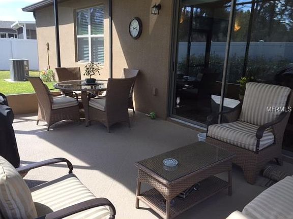 This beautifully maintained home has dynamic curb appeal! From the lush landscaping to the relaxing front porch you will feel welcomed. Entering the foyer with it''s 24''X12'' ceramic tile flooring you will be guided into the Flex room. This room is currently a game room but could be a living area, exercise room, office, endless possibilities! The kitchen boasts many upgrades including stainless steel appliances, 42 in Level 2 cabinetry with crown molding, granite countertops and center island, tile and glass backsplash and eat in/nook area. The spacious great room overlooks the extended and screened lanai which features a custom built roof. Nicely landscaped backyard is partially fenced with a serene wooded backdrop. The owner''s suite also offers a relaxing view of the backyard and includes walk in closet with an abundance of storage space. The owner''s bath boasts his and her sinks and inviting walk in shower. Other features include double paned and tinted windows, recessed lighting, engineered wood flooring in flex room and all bedrooms, all other rooms have 24''X12" tile, 4 ft extended garage and garage floor is polyurethane coated, exterior landscape lighting and so much more! This is one home you must come see.