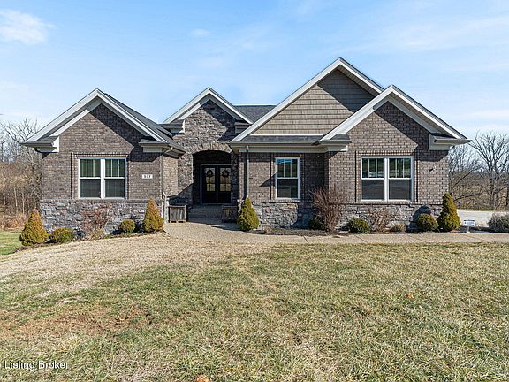 Embrace Tranquility in this Secluded, Modern Walkout Ranch Discover the perfect blend of elegance and serenity in this stunning all-brick walkout ranch, nestled on over an acre of lush, fall-away land. This six-year-old home welcomes you with grand double doors, opening to a thoughtfully designed layout featuring 5 spacious bedrooms, 3 full baths, and a fully finished lower level. The open-concept kitchen is a chef's dream, boasting stainless steel appliances, granite countertops, and ample space for entertaining. The primary suite offers a private retreat with a huge walk-in closet and a spa-like bath. Two additional bedrooms on the main floor and two more in the finished lower level provide flexibility for guests, a home office, or multi-generational living. Step outside to a captivating outdoor oasis. A cozy fireplace area with striking green marble benches sets the scene for intimate evenings, while a hidden creekside retreat offers a peaceful escape under the trees. The expansive two-tiered deck, accessible from both levels, is perfect for entertaining or unwinding. This unique retreat offers secluded luxury and modern comfort. Schedule your showing today and experience all the details that make this property truly exceptional!