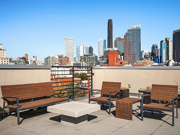 Building amenities include a part-time doorman, a stunning rooftop with panoramic views of Brooklyn and the Manhattan skyline, and a fully equipped fitness center. The building also offers two spacious lounges, ideal for relaxation or entertaining, along with bike storage and parking options.