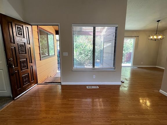 Light and bright spacious one-story 4 bedroom, 2 bath home on fully fenced in-town lot. Close to schools, fairgrounds, park, shopping and more and located on a cul-de-sac. Large living room with vaulted ceiling and fireplace (for aesthetics only), small office/breakfast nook just off living room. Kitchen with electric cooktop, dishwasher and refrigerator. Dining area with pergo flooring and slider to the outside patio area. All bedrooms are on the same side of the house. Spacious garage with storage cabinets, and fenced garden area. Tenant pays all utilities including water/sewer and garbage. NO PETS, NO SMOKING Light and bright spacious one-story 4 bedroom, 2 bath home on fully fenced in-town lot. Close to schools, fairgrounds, park, shopping and more and located on a cul-de-sac. Large living room with vaulted ceiling and fireplace, small office/breakfast nook just off living room. Kitchen with electric cooktop, dishwasher and refrigerator. Dining area with pergo flooring and slider to the outside patio area. All bedrooms are on the same side of the house. Spacious garage with storage cabinets, fenced garden and chicken coop.cluck cluck cluck.... Tenant pays all utilities including water/sewer and garbage.