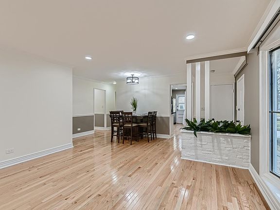 WOW!! Come see this 3 bed 2 bath recently updated home with a big addition with vaulted ceilings in the master bedroom. Ready to move in with New Oak Hardwood Floors, new two tone paint, new washer and dryer, Newer furnace(2019), updated kitchen with glass backsplash, New Bosch 36 inch gas stove top, New dishwasher, dual ovens, updated bathrooms, newer windows throughout. Enjoy living without backyard neighbors because this house backs up to Mark Twain Elementary School!! The Metra and NEW Wheeling Town Center is a few minutes away as well as the Aquatic Center. Close to shopping, entertainment and highway. Home warranty included! Come see it today!!