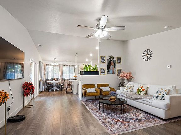 - Ceiling Fan(s), Kitchen/Dining Combo, Main Level Primary, Pantry, Solid Surface Counters, Vaulted Ceiling(s), Walk-In Closet(s), Walk-In Shower, Programmable Thermostat
