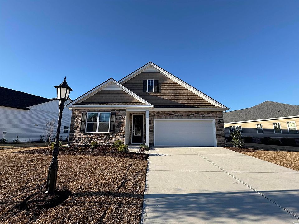 Welcome Brunswick Plantation! A gated community with 24 hours security, 27 hole Championship Golf Course on site (membership not included), 11,000 sq. ft. amenity center with meeting and activity rooms, fitness center, two pools (salted indoor and outdoor), indoor catering kitchen, outdoor grilling area, walk to restaurants onsite, multiple tennis and pickle ball courts. Close to shopping and dining in Calabash and the Myrtle Beach area in SC. Large front porch perfect for rocking chairs to enjoy the warm coastal weather. The split bedroom floorplan creates a private owners' suite in the back of the home while the open concept kitchen, living, and dining areas are perfect for entertaining! Granite countertops, stainless Whirlpool appliances in the kitchen. There is also a flex room on the main level which would be great for a home office or formal dining room. The owners' bath is a must see with two large separate vanities, a tiled shower, and huge walk-in closet. This is America's Smart Home! Each of our homes comes with an industry leading smart home technology package that will allow you to control the thermostat, front door light and lock, and video doorbell from your smartphone or with voice commands to Alexa. *Photos are of a similar Darby plan. Pictures, photographs, colors, features, and sizes are for illustration purposes only and will vary from the homes as built. Home and community information, including pricing, included features, terms, availability and amenities, are subject to change and prior sale at any time without notice or obligation. Square footage dimensions are approximate. D.R. Horton is an equal housing opportunity builder.