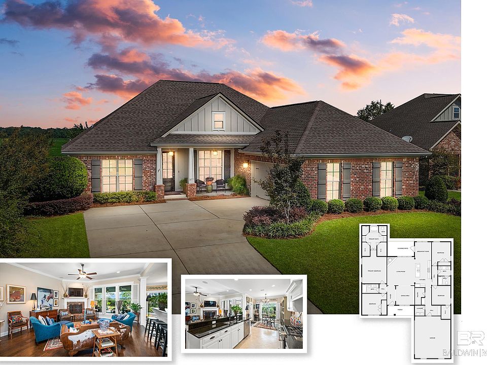 Location, location, location. Situated in highly sought after Old Battles Village, an established Point Clear community, welcome home to a Craftsman style Morgan Plan designed and built by Truland Homes. Fabulous one story open concept layout with 4 bedrooms and 3 baths on a graciously landscaped corner lot with beautiful view of farmland. Located just around the corner from Pt Clear Publix, 5 minutes to downtown Fairhope and Pier, Lakeview Country Club, and Grand Hotel. Only 45 minutes to Gulf Shores beaches. Gold Fortified to save money on insurance, loaded with upgrades. The gourmet kitchen has granite counter tops, Stainless steel Kitchen Aide slide gas range, microwave and dishwasher and Frigidaire Professional refrigerator. LED undermount lighting is provided for all kitchen cabinets. Mud room for all the coats and drop offs. Built in computer nook/desk featuring 4 drawers and two filing cabinets. Whole house Generac generator, Architectural roofing, Gutters, Down lights across the front back of the home with extensive landscaping all around plus fully fenced back yard. Sprinkler with separate water meter. Eye catching view through the Living room to the back gardens and extended patio perfect for large outdoor entertaining. Beautiful hardwood floors and moldings throughout the entire home with ceramic tile in the wet areas. Granite countertops in all baths. Large walk in pantry. Laundry room has two cabinets and additional shelving for storage. Primary suite with large ensuite bath that contains double granite and wood vanities with framed mirriors. Ceramic tile shower, large soaking tub and his and hers walk-in closets with built in shoe racks and sweater boxes. The split floor plan gives privacy to two additional bedrooms and baths. A beautiful antique Moroccan custom barn door adds more privacy to split floor plan. A separate office and bath can also double as a fourth bedroom if needed. Buyer to verify all information during due diligence.