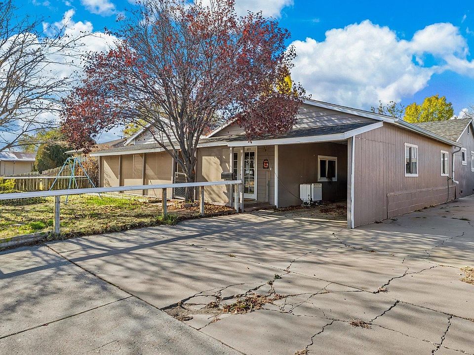 Spacious ranch-style home in the heart of Grand Junction! Featuring four generously sized bedrooms, including a primary suite with a walk-in closet and private bath (currently used as a playroom), this home offers an expansive floor plan perfect for entertaining and everyday living. The living room flows seamlessly into the open kitchen and dining area, creating a welcoming space for gatherings. One bedroom is non-conforming (no window), making it ideal for a home office or bonus room. The large dining room and ample square footage make this home a rare find at this price point in the city. Outdoor features include a privacy-fenced backyard, a detached shed/workshop with a storage loft, and both front and back covered patios for enjoying Colorado's beautiful weather. The attached carport offers potential for conversion into a fully enclosed garage, and the oversized concrete driveway on the north side provides RV or additional off-street parking. With paint touch-ups and some updates, this home is ready to shine! Conveniently located near Lincoln Park Golf Course and central to all Grand Junction amenities, this property is a must-see.