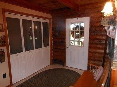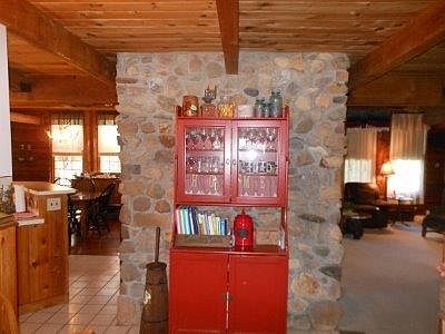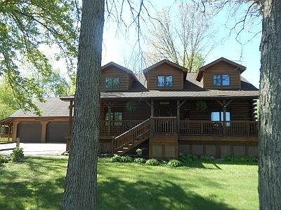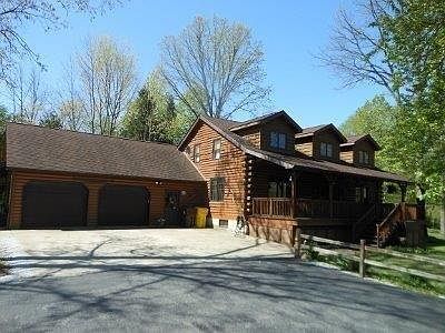 Genuine log home in a serene setting. If you enjoy the outdoors and the coziness of log construction, this home is for you! Open concept main level centered around a stone, wood burning FP. 2 large bedrooms & bath on 2nd floor overlook great room. Potential to create a third bedroom on the main level. Wonderful, sun room adjacent to the great room brings the outdoors in. Owners expanded the windows in 1998. Full, mostly finished basement with 3/4 bath. Attached, oversized 2.5 car garage w/ walk-up attic & 2nd stairway to basement. Additional 2 car garage & storage shed. Storage galore! Picturesque 4.434 acres overlooking large, spring-fed, shared, stocked pond. Enjoy the beautiful outdoor setting from the extended, covered front porch overlooking the pond, the wrap around covered patio, the back deck, the custom built picnic pavallion or throw a few casts after a long day off your own dock. Private, yet in Center township, Valparaiso Schools with the bonus of city water and sewer.