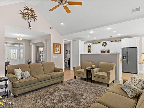 OFFERING $5000 BUYER CREDIT for this custom built (2004) 3 bedroom + a study/office space & a bonus/theater room plus 3.5 bathrooms on a .369 acre lot in Brunswick Plantation! Upon entering the foyer, you'll be greeted by the dining room to your left & the living room ahead with high ceilings, builtins & a travertine mantled fireplace (updated in 2015). The living room is open to the kitchen where you'll see white cabinets, recessed lighting, stainless steel appliances (refrigerator, electric range w/double oven & microwave are GE & the dishwasher is Bosch), & a breakfast area. This area is also directly accessible to the enclosed, glass & insulated lanai (2015) with custom blinds (2017). On the main level, you can also find the laundry room with an additional refrigerator that conveys, a study/office plus the Primary Suite (added on in 2009) with a massive walk-in closet, an updated bathroom (shower replaced in 2015), a soaking tub (2010) & dual sinks. The split floor plan allows 2 additional bedrooms on the main level with updated carpet (2018) & features a guest bathroom that was updated with an extra large bench shower (2009). Enjoy movie nights in the theater room upstairs that features industrial grade carpet, dimmable lights, a projector & 10' screen, acoustic tiles, 6 motorized leather chairs with ''butt kicker'' technology that vibrates to the sound of the movie plus a bar area with quartz countertops. All movie artwork & popcorn maker can convey! Off of the theater/bonus area, there is a half bathroom for convenience & also an additional sleeping or storage area. For parking, you'll have more than enough room between the driveway & the oversized garage with built in metal cabinets & sink. Additional features not to miss include a deck with a pergola (renovated in 2016) that overlooks the private backyard, tankless water heater (2016), New Roof (2017 - transferable shingle warranty), whole house surge protector, & a 15 year termite treatment (done May 2022
