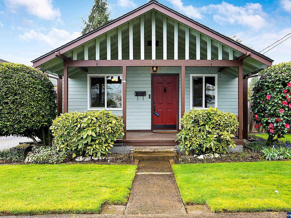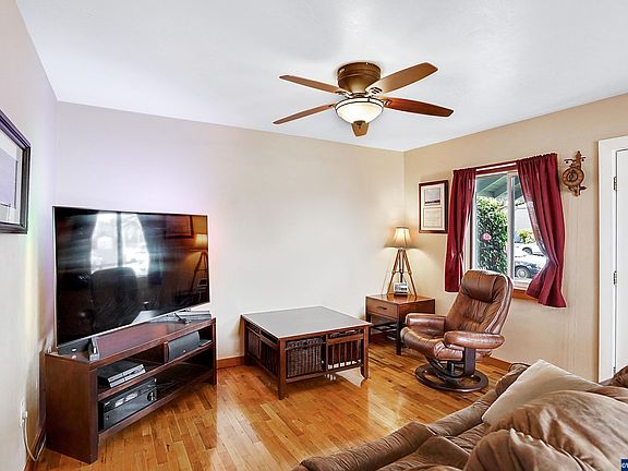 Charming One Level! Pride of Ownership & Well Maintained! Living room w/hardwood floors, kitchen features pantry cabinet, ss sink, kitchen table area, side door access, 2 bedrooms plus 9.4x6.11 office area, converted single garage currently used as utility/shop/storage, vinyl windows, gas fa heat & central ac. Lots of small home features! Huge fenced backyard w/shed, many garden beds, drip system & patio. Also a large paved driveway! Super cute!