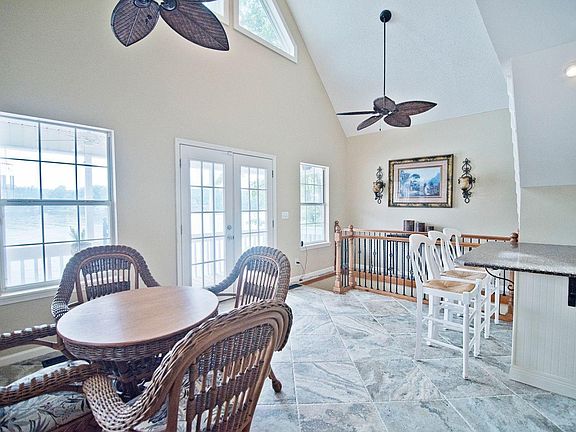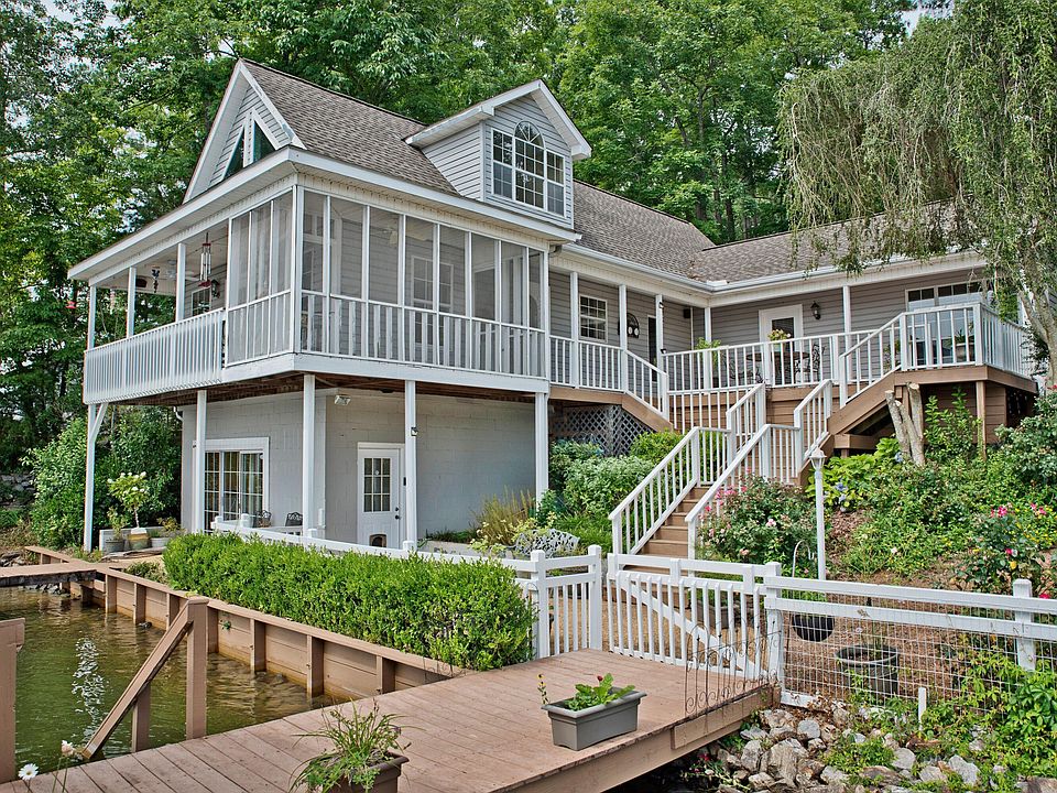 CONVIENENT & QUIET on the North side of the Lake. This beautiful lake house has a water view from almost every window. Large master bedroom has glass doors that open onto the main level deck (20x22). Kitchen has granite countertops and stainless steel appliances. Your morning coffee can be enjoyed from the screened porch, or observation deck on the main level. Basement bedroom The Lake Room has a separate entrance and walkout access to the lake and fishing pier. Upstairs bedroom is great for guests and also has a private entrance. Loft area has a long lake view and is full of possibilities. Covered boat house has electric boat lift and includes an entertaining area, floating dock and stairs for swimming. Invite your friends and enjoy the lake!