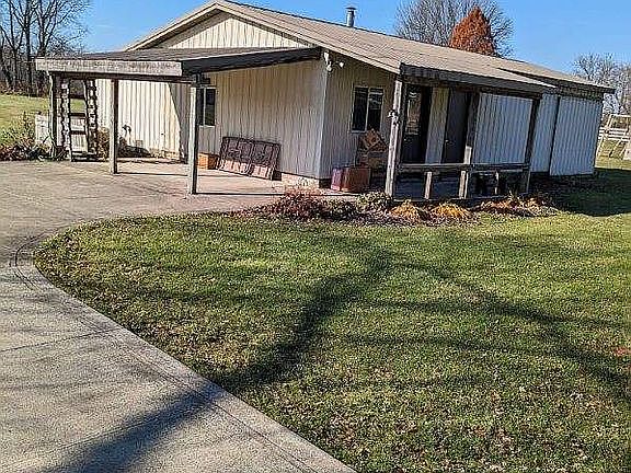 Cabin Style Ranch home on a crawl space with concrete driveway. 1 Bedroom with additional craft/bonus room, 2 Full Bathrooms, attached enclosed 4 season room, vaulted wood ceiling in kitchen and living room. 2 car attached garage with attic space and mudroom entrance. Gas log fireplace in living room. Outdoor Pavilion, detached garage with electric and newer furnace; plenty of storage space, a separate area for crafting and plenty of space for storing your mower or puttering in the workshop.