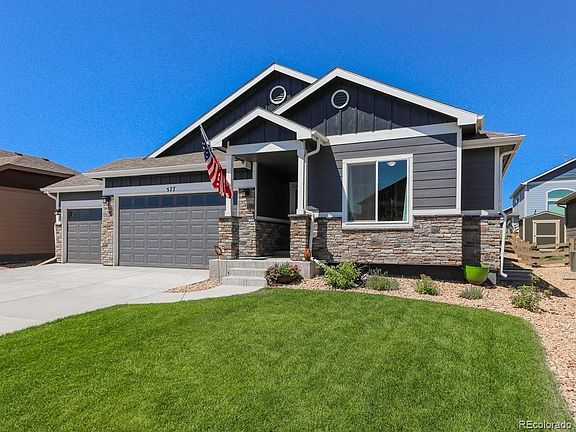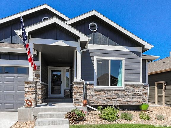 Beautifully appointed open floor plan ranch w/full finished basement. 5 bedrooms, 3 full baths, 3 car garage w/9ft tall main door. Fully landscaped, designer interior paint, upgrades galore! Covered patio area in back, built-in workbench in garage. Quartz countertops throughout, oil rubbed bronze fixtures, 1 gig internet availability. Rough in for wet bar in basement. Community pool and park area. Live in up and coming Berthoud! Close to TPC golf course and $1,000,000 + homes. Better than new! All the additional expenses have been satisfied. New Build base prices close to this resale price.