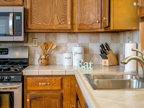 - Kitchen Cabinets/Counters: Wood Cabinets, Tile Counter