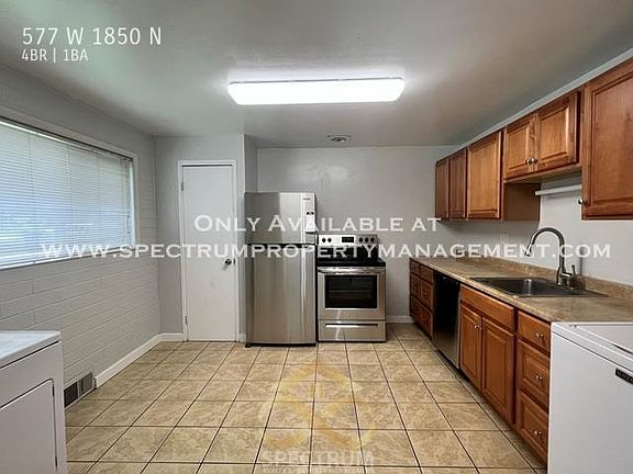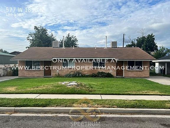 SCHEDULE SHOWINGS DIRECTLY WITH SPECTRUM. Message us for more information or how to schedule a showing. MOVE IN SPECIAL! $995 Rent for 6 months, then $1200 per month for the remainder of the lease term. Lease term is negotiable. 4 Bed/1 Ba duplex for rent. THIS APARTMENT IS NOT STUDENT HOUSING. Recently updated, quiet north Provo neighborhood just off University Parkway. Fenced yard. Near shopping, public transit, and blocks from the Provo River Trail. Washer/Dryer available in the unit. Tenants pay all utilities. Google Fiber available. Tenants responsible for proper yard care, mowing, watering, weed control, and snow removal. NO PETS! NO Smoking, E-Cigarettes or Vaping! Minimum 6 months up to 18 months lease. 14 day move in window required. Security Deposit equal to 1 (one) months rent OAC. Policy does NOT allow more than 3 unrelated individuals in any property with 2 or more bedrooms. Apply directly on Spectrum's website. ALL APPLICANTS must pass a Credit and background check (Credit under 600 will NOT be accepted), have 2 years positive verifiable rental history, and combined gross income of 3X Rent. NO Evictions or Rent Collections. $50 per adult non-refundable application fee plus a $3.00 processing fee. $200 Lease Initiation Fee due upon lease signing. Call or text leasing agent. All Spectrum Realty & Property Management residents are enrolled in the Resident Benefits Package (RBP) for $50.00/month which includes renters insurance, credit building, $1M Identity Protection, HVAC air filter delivery, move-in utility concierge service, resident rewards program, and much more! More details upon request. Renter's Insurance is required. Owner Established Water, Sewer, Trash, Wi-Fi accounts billed monthly to tenant at a flat rate of $75. Resident/Tenant is responsible to set up and pay for all other utilities including: * Power * Gas * Other Internet/Cable/TV * -$25 per month utility billing fee if applicable
