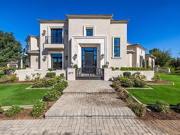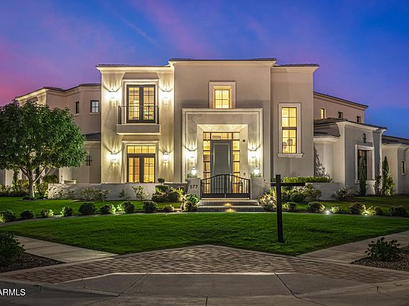 Experience extraordinary living in the exclusive, gated community on the Island at Fulton Ranch, located in the heart of Chandler. This 8,191 sq. ft. home offers 5 bedrooms, 5.5 bathrooms, and every amenity designed for comfort, style, and entertaining. Step inside to a dramatic two-story entry with a sweeping staircase, elegant crown molding, and a formal dining room complete with a climate-controlled wine room. The chef's kitchen is a showpiece with dual islands, Wolf appliances, Sub-Zero refrigerator, two dishwashers, custom cabinetry, and abundant natural light. A spacious family room with custom built-ins opens to the resort-style backyard. The main level features a luxurious primary suite, private office, exercise room, game room w/ golf simulator and a private guest suite. Upstairs offers a versatile layout with 3 additional bedroomseach with en suite bathsand a bonus living space. The indoor/outdoor entertaining areas are one of the best features with retractable doors and endless possibilities for family gatherings. Enjoy the sparkling pool, spa, sport-court, built-in BBQ, commercial-grade misting system, turf for low-maintenance living, and plenty of room to gather. The property sits on a prime corner lot in a cul-de-sac offering exceptional privacy and space. Add a 4 car garage, owned solar, custom lighting and extensive moldings/built-ins throughout to make this a perfect fit for anyone.