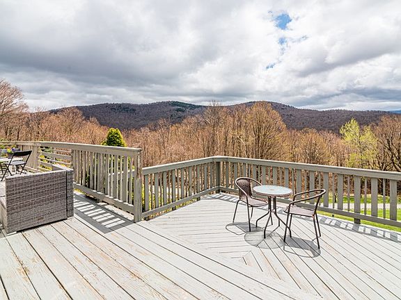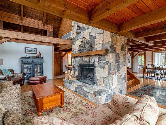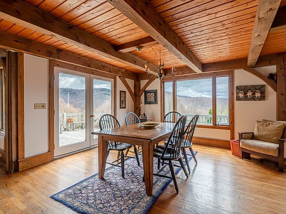 Looking for that perfect getaway with privacy and views - this post and beam contemporary sits perched on almost 70 acres with a sweeping grassy front yard and acres of woodlands behind for the outdoor enthusiast.  Enormous deck to soak up the Green Mountains.   Step inside to the vaulted living room with 2 story stone fireplace overlooking the living room.  Remodeled kitchen with granite and stainless steel appliances and warm wood cabinetry throughout.  Dine while gazing out the big picture window.   There's a main floor bedroom, which could be a family room as well with full bath and walk in closet.   The second floor has 2 additional guest bedrooms, loft overlooking the living room, plus a sitting room or additional sleep quarters.   Full renovated bath with tiled shower.  Newer furnace with double oil tanks to keep you warm and some mini splits with a/c to keep you cool. Being sold mostly furnished.  Detached garage to keep all your toys and cars with room above for storage. With Fiber Optic lines its easy to work from home.  On the Danby/Pawlet line with high school choice.