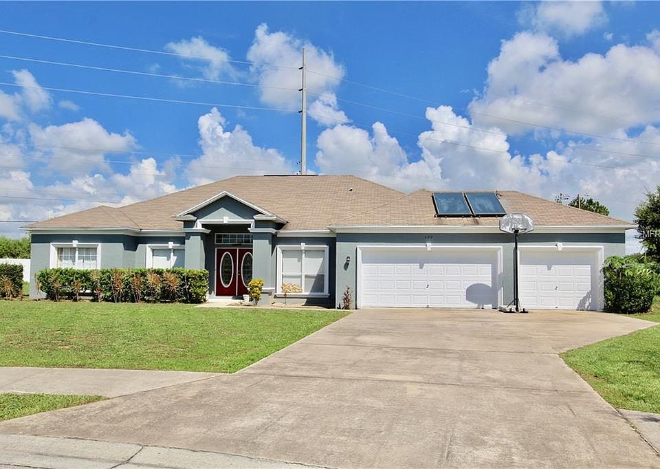 Large 4 bedroom/3 bathroom located in Oak Crossing, a lovely community off Berkley Road in Auburndale, FL. Very close to both I-4 and the Polk Parkway, convenient to shopping, entertainment and more! The home is built by Southern Homes and is their popular Rockingham model that features a triple split open floor plan with den (office) and formal dining room. The home has a screened in lanai, huge backyard and 3 car garage and has its own cul-de-sac!