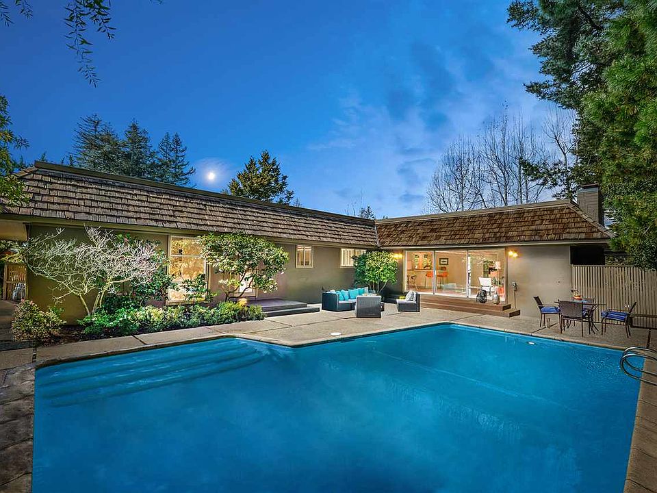 Located in Hillcrest Highlands you'll find this masterpiece of mid-century design and aesthetic. Enchanting indoor/outdoor spaces + retro charm abound. The residence lives like a single level home with convenient split level interior access to both levels. The living spaces invite family gatherings with bright, open spaces. The kitchen features hardwood floors, a butcher block island w/ bar sink, stainless double ovens, a gas cooktop and a Sub Zero fridge. Greenhouse windows bring the outdoors in and frame a lovely dining area. The "wow factor" of this home is the family room/indoor bar area overlooking the pool/patio. The 2,960 sq ft main level includes three bedrooms, including an ensuite bedroom with its own pool/patio access, a spacious hall bathroom, powder room off the entry, laundry area and storage. The fourth bedroom and game room comprise the 1,268 sq ft lower level. Nearby regional parks and trails, Chabot Observatory and convenient I-580 access.